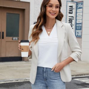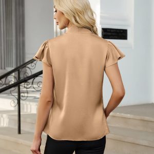 Scalloped V-Neck: This women’s formal top features a classic V-neck and scalloped details, fashionable and elegant.